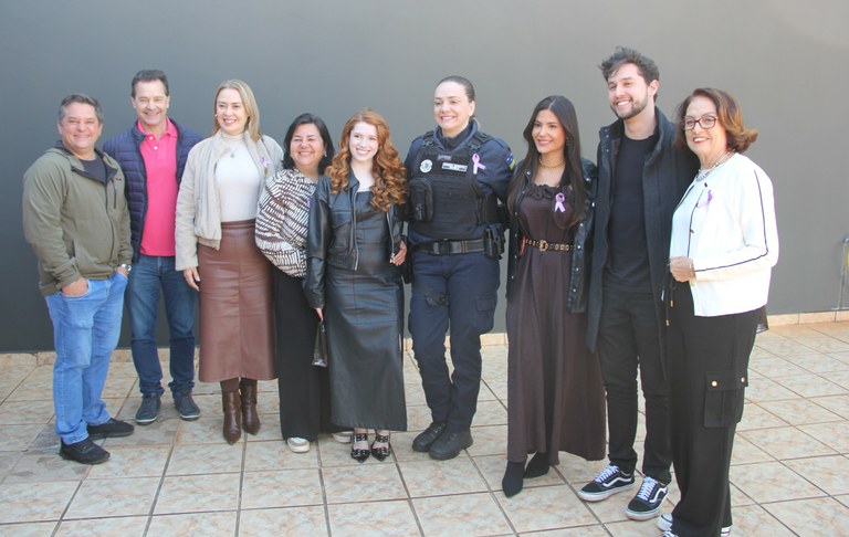 A Delegacia da Mulher e a Prefeitura Municipal de Arapongas deram início à Campanha Agosto Lilás – dedicado à conscientização e combate à violência contra a mulher. A abertura oficial da campanha aconteceu na manhã desta sexta-feira (01) e contou com a presença da vice-prefeita Édina Kummel, representando o prefeito Rafael Cita, da delegada chefe da Delegacia da Mulher de Arapongas, dra. Camila Costa, do comandante da 7ª CIPM, major Wolski, do deputado estadual Pedro Bazana, do presidente da Câmara Municipal, vereador Márcio Nicke, autoridades civis e militares, representantes de órgãos públicos e instituições parceiras, entre elas, a Procuradoria Especial da Mulher, vinculada à Câmara Municipal, representada pelas vereadoras Meiry Farias e Simone Sponton, procuradora e procuradora adjunta respectivamente. Também prestigiaram o evento, os vereadores Alexandre Juliani e Toninho da Ambulância.